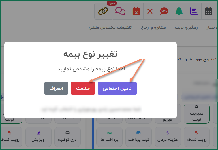 در سامانه پدرا امکان تغییر نوع بیمه بیمار توسط پزشک، منشی مطب و پذیرش کلینک وجود دارد.