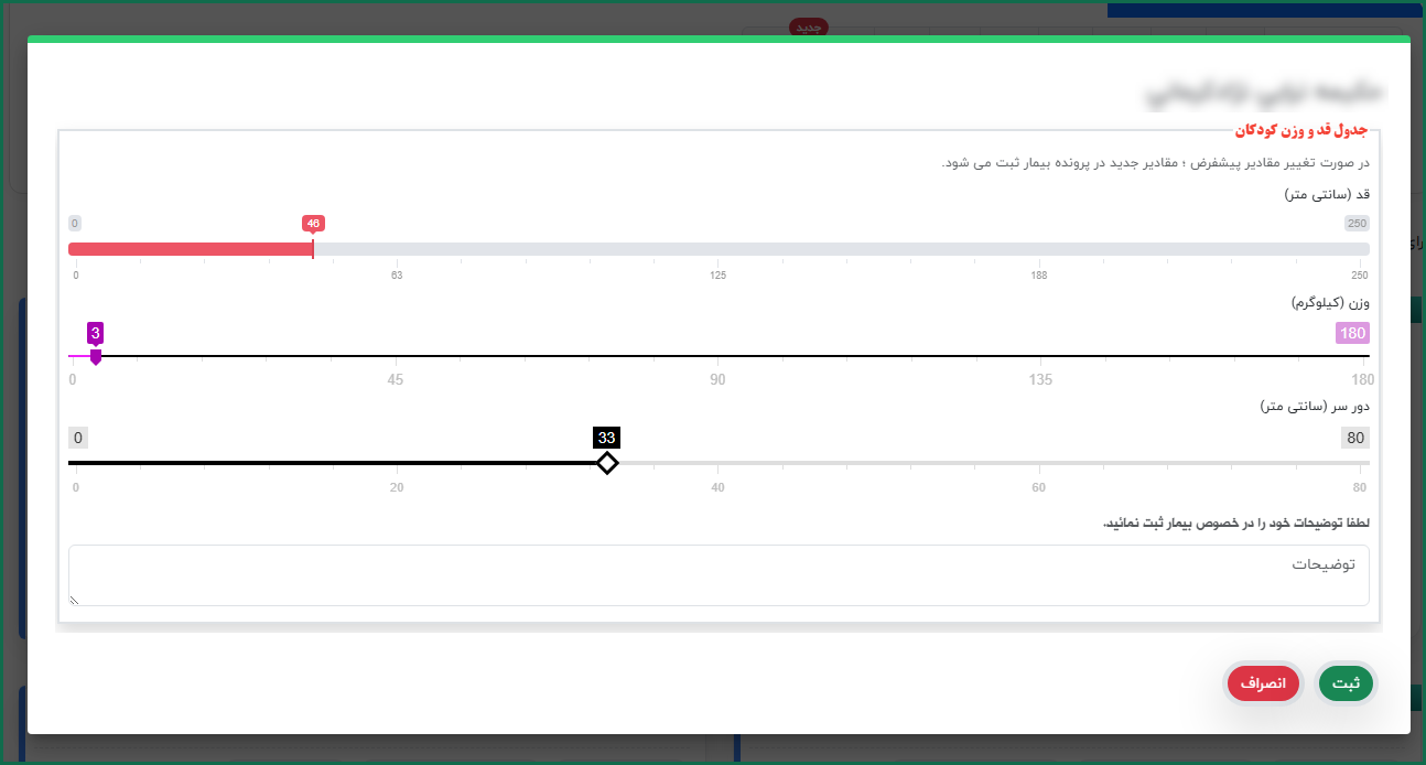 ثبت اطلاعات بیمار (ویژه متخصصان کودکان و نوزادان)