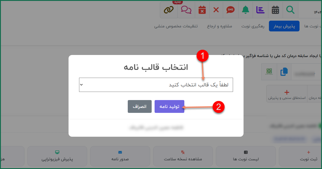 - قالب نامه مورد نظر را انتخاب کرده و سپس روی کلید "تولید نامه" کلیک نمایید.
