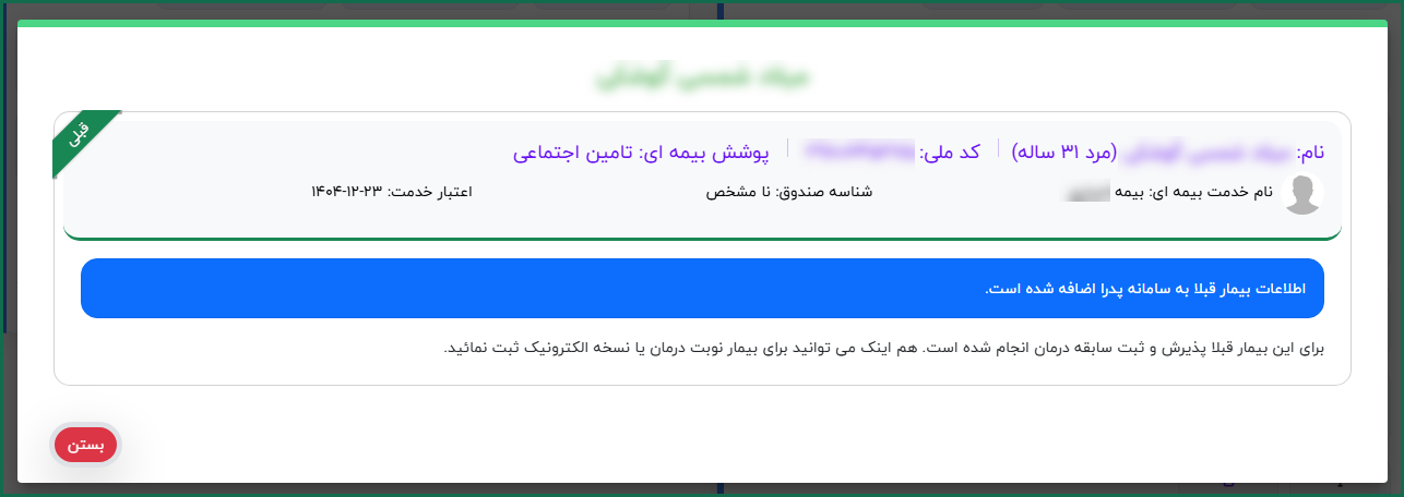 در سامانه پدرا امکان مشاهده اطلاعات بیمه ای و کنترل تاریخ اعتبار بیمه بیمار در پنل پزشک، منشی مطب و پذیرش کلینک وجود دارد.