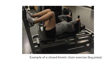- تمرینات تقویتی در زنجیره حرکتی بسته (نظیر squat و leg press) تا 60 درجه (با افزایش تدریجی مقاومت)