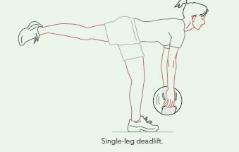 - Single-leg deadlifts (در صورتی که از اتوگرافت همسترینگ استفاده شده است باید این تمرین به هفته 6 تا 8 موکول شود)